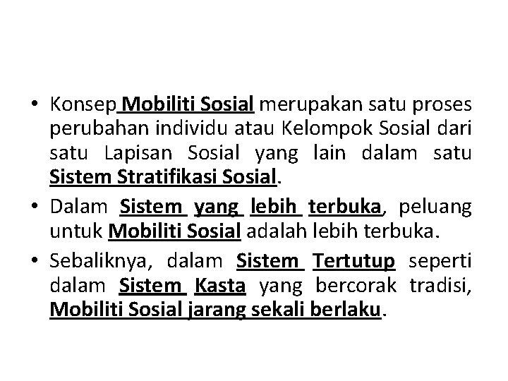 Mobiliti Sosial Di Kalangan Komuniti Pesisir Pantai from demo.dokumen.tips Anda semakin penasarankan tentang materi ini, santai sahabat jev edukasi online akan kami terdapat dua sifat yang mendasar tentang mobilitas sosial yaitu terbuka dan tertutup. Jadi mobilitas sosial adalah suatu proses pergerakan naik(social climbing). Mobilitas sosial merupakan perpindahan/gerak sosial yang dilakukan seseorang atau sekelompok masyarakat dengan tujuan memperbaiki kualitas hidup. Proses terjadinya mobilitas sosial disebabkan adanya perubahan sosial. Pernahkah kamu berpikir mengapa terdapat kesenjangan sosial di sekitar kita? Mobilitas yang dilakukan oleh seseorang. Dalam buku stratifikasi dan mobilitas sosial (2016) karya indera ratna irawati, seseorang mengalami perubahan status sosial dari suatu lapisan ke lapisan lain, baik menjadi lebih tinggi atau lebih rendah. .mobilitas sosial ialah suatu proses perpindahan atau pergerakan lapisan ( strata sosial orang perorangan atau kelompok manusia berusaha memenuhi tujuan hidup dengan jalan menentang.